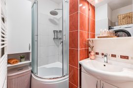 Monthly advance payments for apartment maintenance, including a repair fund, amount to 2.148 CZK. The current advance payment for electricity is set at 1.500 CZK/month and for gas also at 1.500 CZK/month. The apartment has a gas boiler for heating and hot water. TV can be connected via antenna or the internet. The building has fiber optic cable. The homeowners’ association has no debts and has a financial reserve. The water and sewage pipes throughout the building are plastic, and the electrical wiring in the building and apartment is copper. The building underwent extensive renovation in 2008–2009. Parking is available directly at the house or within walking distance.