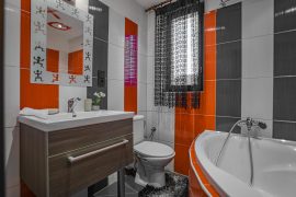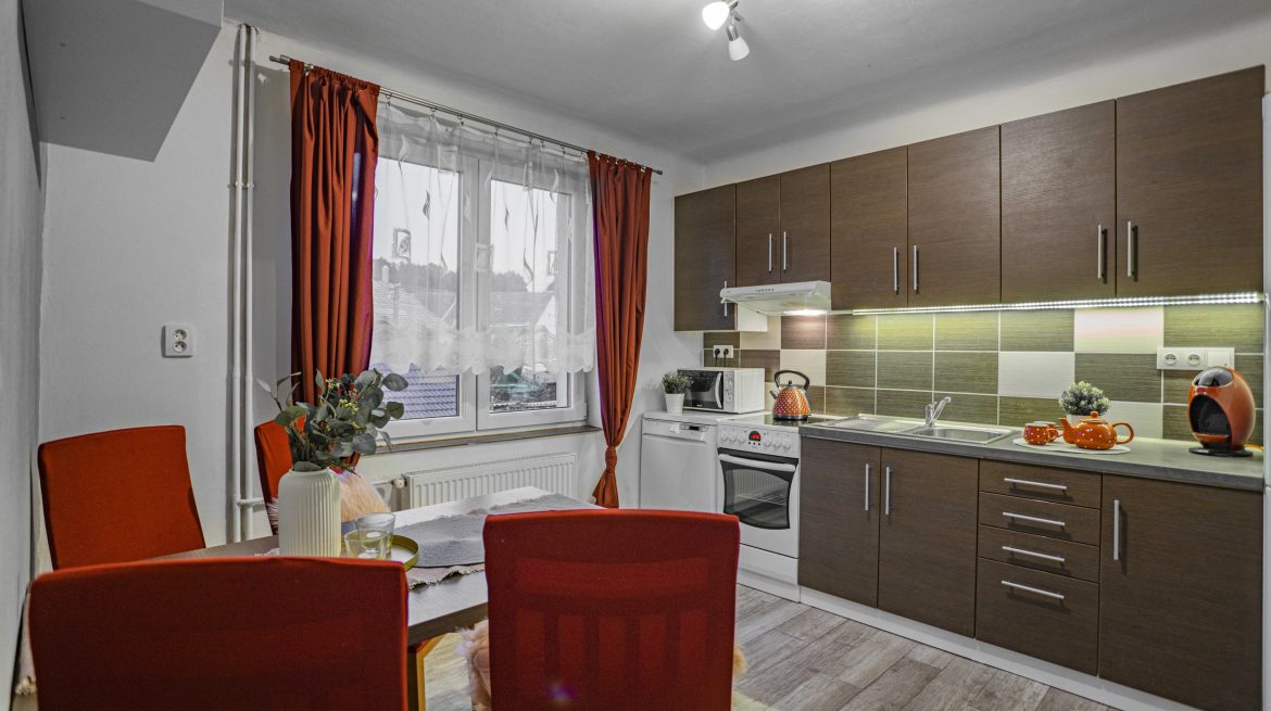 Upon entering the house, we find ourselves on the ground floor, which offers the technical facilities of the property. Currently, there is a washing machine, an electric boiler, and a solid fuel boiler. This part of the property could be converted into a studio apartment, which could generate rental income. Alternatively, it could be used to create a living space for a family member. The first and second floors feature a renovated 3+1 apartment. On the first floor, you will find a hallway, pantry, toilet, kitchen, and living room. A utility room could be built next to the toilet, where the washing machine could be moved and a dryer could be installed if necessary. On the top floor, you will find a bathroom with a bathtub, a bedroom, and a children’s room.