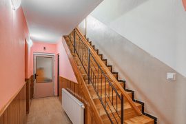 The house offers two residential floors above ground and one underground. On the ground floor there is a kitchen, dining room, living room, bedroom, bathroom and toilet. On the first floor you will find two more rooms and with it the entrance to the attic and to another room, which is located right next to the mentioned attic (currently this room is used for storing things with the possibility of using it as a study). The attic will then please especially those of you who crave a lot of storage space. And if that’s not enough, you’ll find plenty in the basement next to the garage. The cellar space also serves as a technical background, while for the passionate DIYers there is also a workshop.