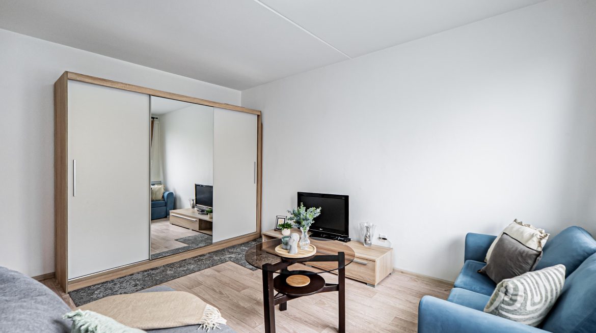 However, if you are looking for your own place to live, you will appreciate that this is an ideal apartment for a single person or couple who wants to live in a location where everything is close at hand. And that is one of its greatest advantages. In the immediate vicinity, you will find all the amenities you need: shops, restaurants, sports facilities, schools, medical services, and public transport stops. An additional advantage is two basement storage units (one of them directly on the floor).