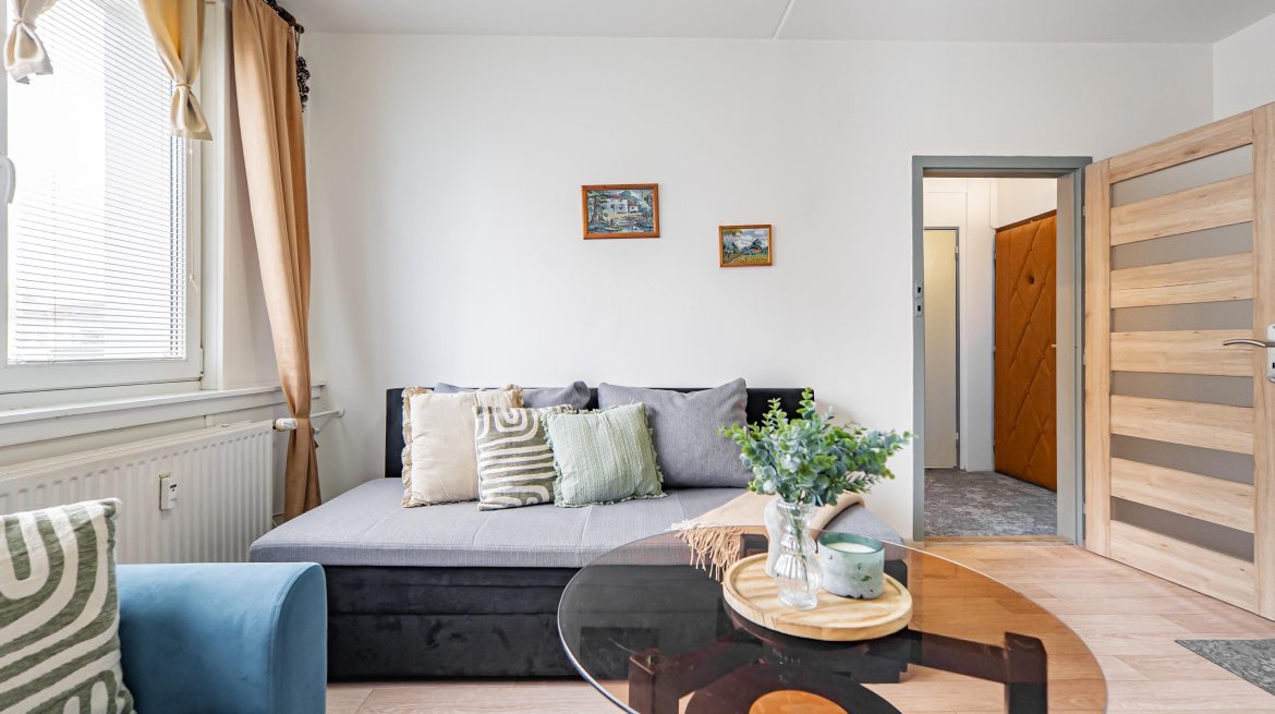 The apartment is located on the second floor of a panel building with an elevator and, thanks to its practical layout, offers everything you need for comfortable urban living. It is currently leased on a long-term basis, which makes it a stable investment with a secure return – no worries and no need to look for new tenants. The rent is 11.000 CZK + utilities. According to the advance payment regulations, the total fees (i.e., including the repair fund, etc.) are set at 3.000 CZK/month.