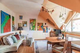 Nemovitost se nachází ve třetím patře cihlového domu bez výtahu v klidné zástavbě, takže o ničím nerušená rána máte postaráno. Jeho další devízou je přirozená světlost a balkon s výhledem do zeleně. A aby toho nebylo málo, sklep o unikátní výměre cca 22 m2, ano, čtete správně, potěší ty z Vás, kteří jsou opravdu nároční na úložné prostory. Zde však potenciál bytu nekončí. Jeho součástí je prostorná komora, která by do budoucna mohla posloužit jako další plnohodnotná místnost. Tím pádem byste byt mohli obohatit třeba o další ložnici nebo o vlastní pracovnu.
