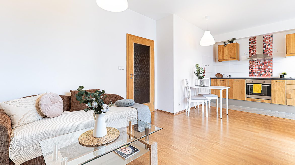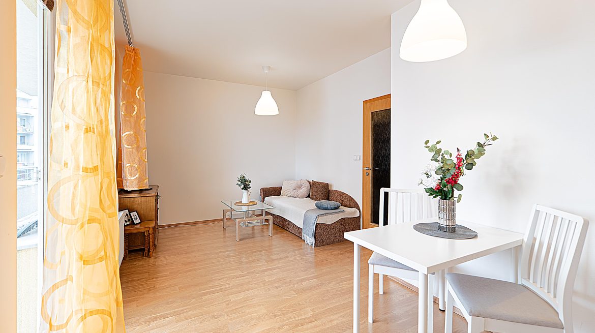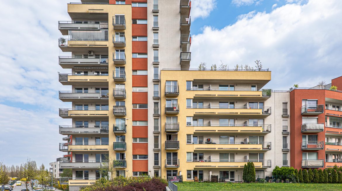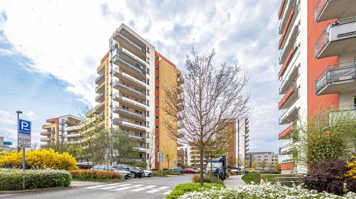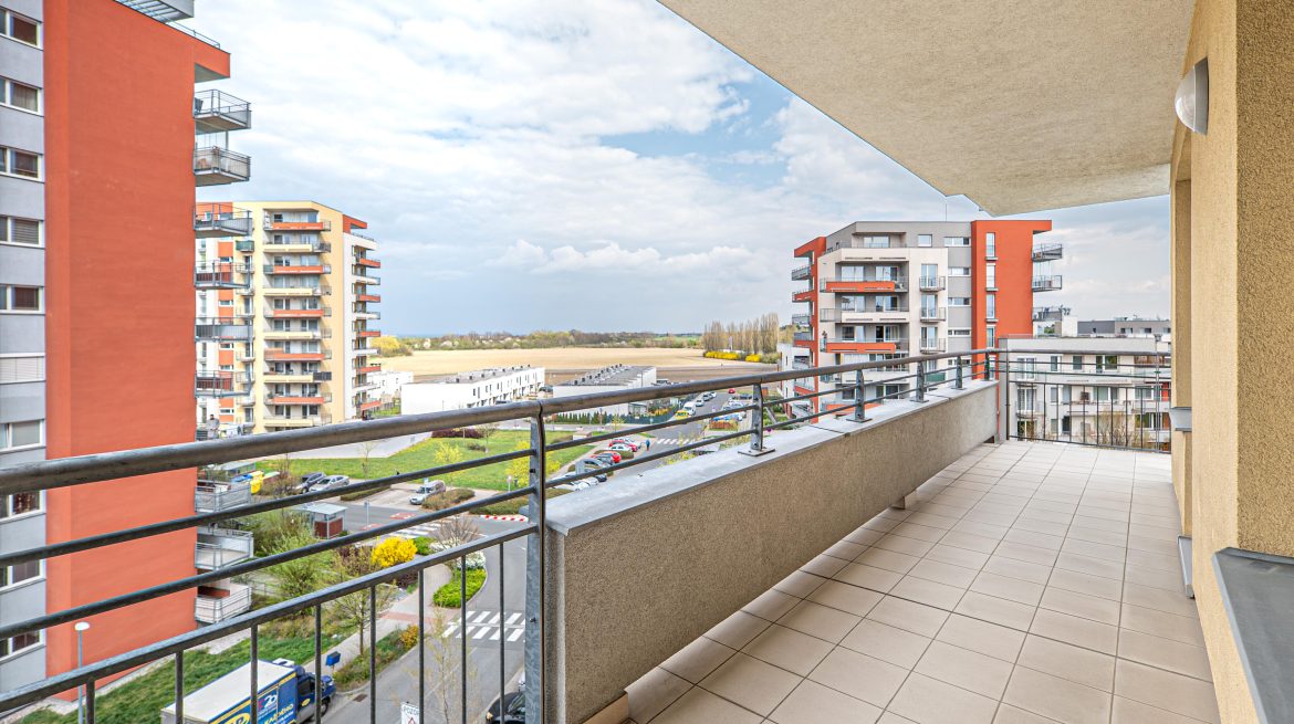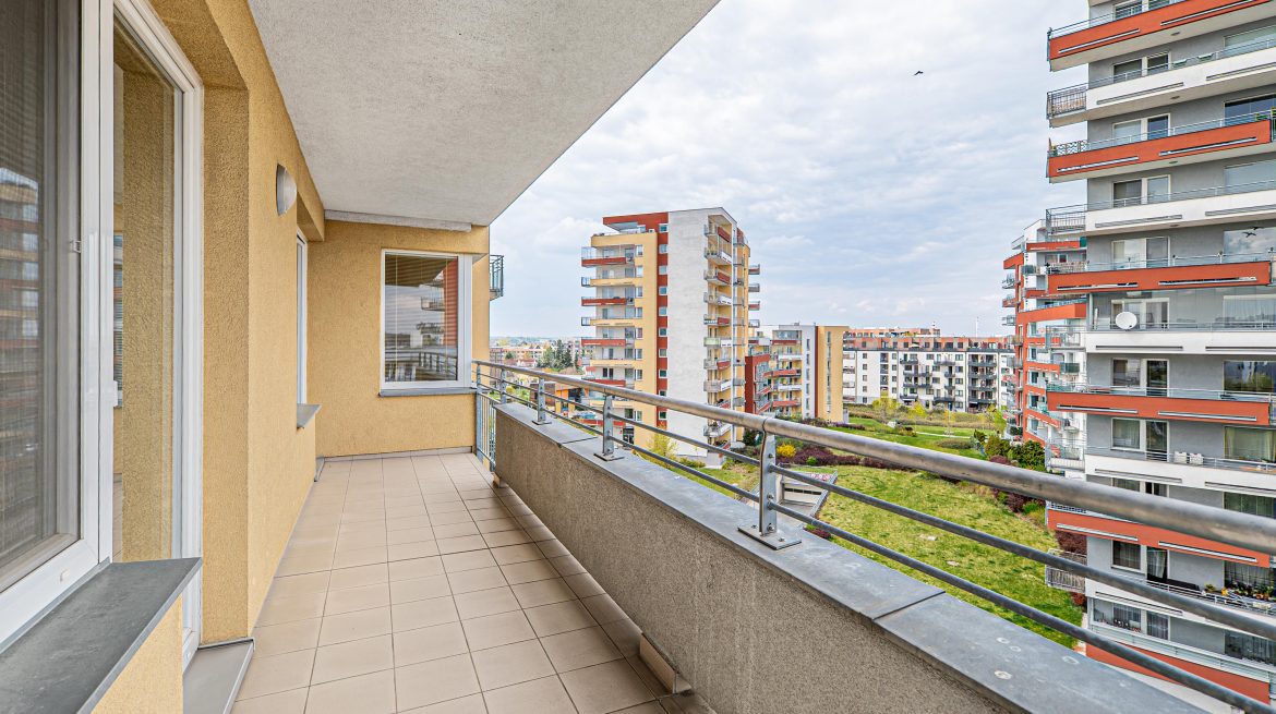 Prodej bytu 2+KK s obrovským balkonem, sklepem a parkovacím stáním v Letňanech (ul. Pavla Beneše)