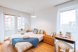 Právě balkon, který se táhne podél obou pokojů a přináší bytu příjemné navýšení celkového prostoru, je nespornou devízou této nemovitosti. Ranní káva, večerní odpočinek nebo jen chvíle klidu po práci tu budou mít své přirozené místo. Kromě všeho zmíněného doplňují praktickou stránku bydlení vestavěné skříně, zavedený internet a nové žaluzie. Dům je samozřejmě vybaven výtahem. K bytu navíc náleží privátní parkovací stání, což je v této části Prahy velmi příjemná výhoda.