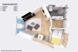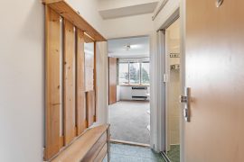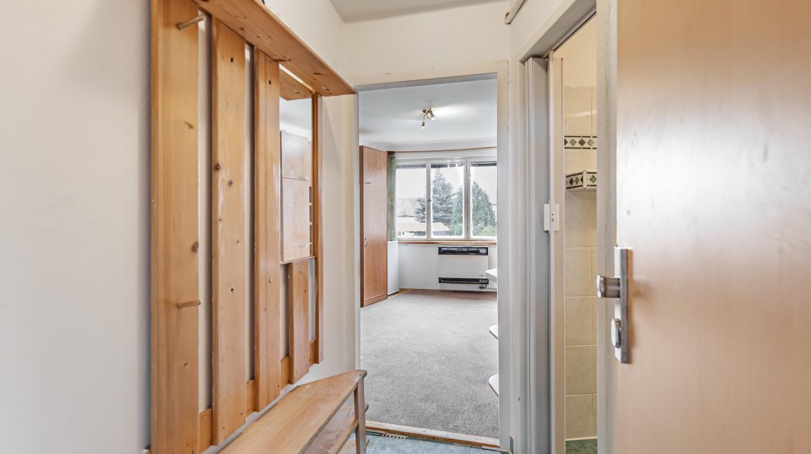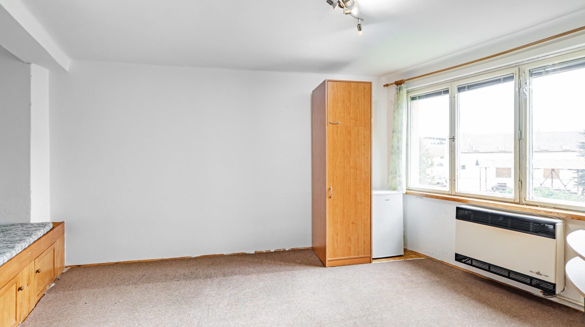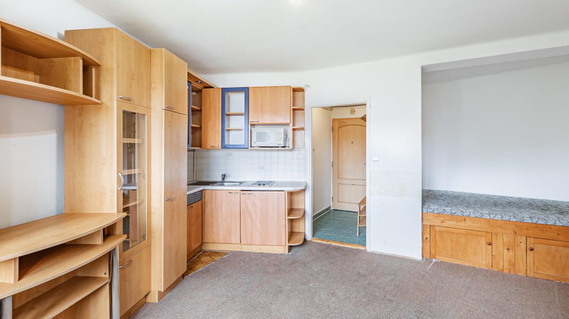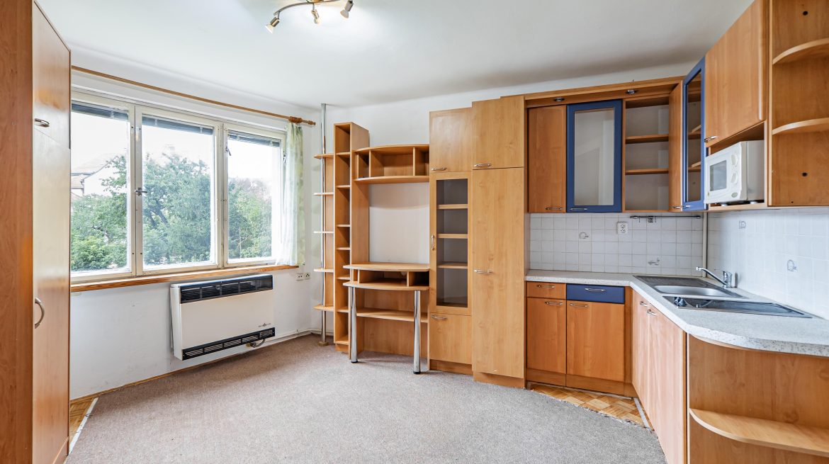 Nemovitost se nachází ve druhém patře cihlového domu bez výtahu. Nabízí předsíň, koupelnu se sprchovým koutem a toaletou a kuchyni spojenou s obytnou místností, která je orientovaná do tichého vnitrobloku. A co se dalšího úložného prostoru týče, tak v přízemí domu pak najdete větší sklepní kóji (cca 3.28 m2). Rozmístění místností a jednotlivé výměry lze vidět na přiloženém půdorysu.