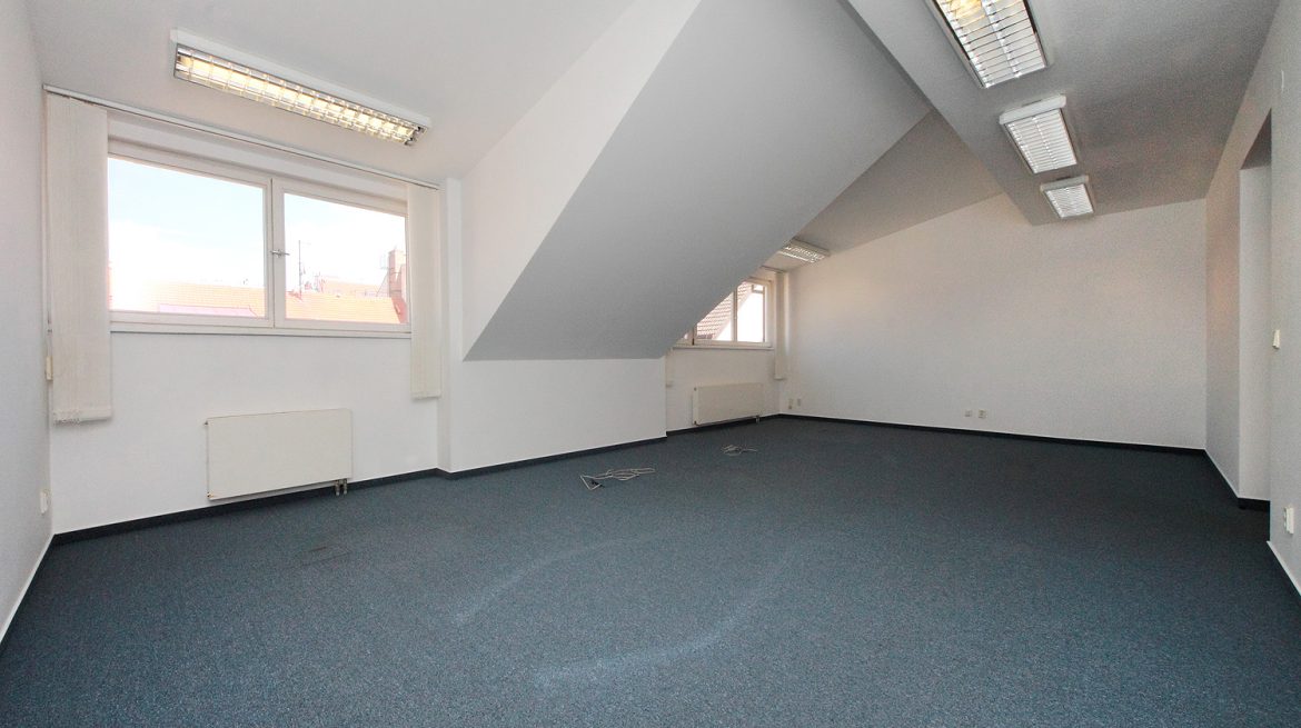 Nabízíme nevybavené podkrovní prostory k pronájmu na Praze 3 na náměstí Barikád s okamžitou využitelností. Dohromady se jedná o tři prostorné světlé místnosti ve čtvrtém nadzemním podlaží objektu. Dvě menší místnosti jsou oritentovány do klidného dvora, třetí se naopak nalézá na opačné straně objektu s orientací do náměstí a s výhledem na hlavní město.