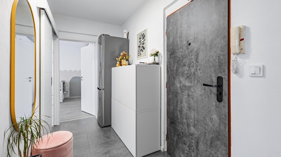 Byt se nachází ve třetím patře bytového domu bez výtahu, o jehož zabudování se právě jedná v rámci SVJ. Dům je zateplený a má nová plastová okna. Byt jako takový rovněž prošel rekonstrukcí, takže Vám dodá na pocitu útulného bydlení ve svěžím slunném domově. Jeho dispozice je velice praktická, jelikož obývací pokoj a ložnice jsou od sebe umístěny na opačných stranách bytu, což Vám zaručí klidné a pohodové spaní pro případ, že by někdo další dále aktivně využíval obývací pokoj. Byt je tak vhodný pro jednotlivce náročnějšího na prostory, dále pro pár, který hodlá započít novou životní kapitolu, nebo třeba i pro začínající rodinu o třech osobách.