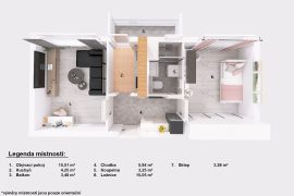 Výměry jednotlivých místností pak můžete nalézt v přiloženém půdorysu. Kromě zmíněných obytných místností je samozřejmostí i kuchyně se vstupem na prostorný balkon a koupelna s toaletou. To celé doplněno ještě o větší chodbu/předsíň při vstupu do bytu. A samozřejmě nesmí chybět sklep v přízemí domu o výměře cca 3.26 m2.